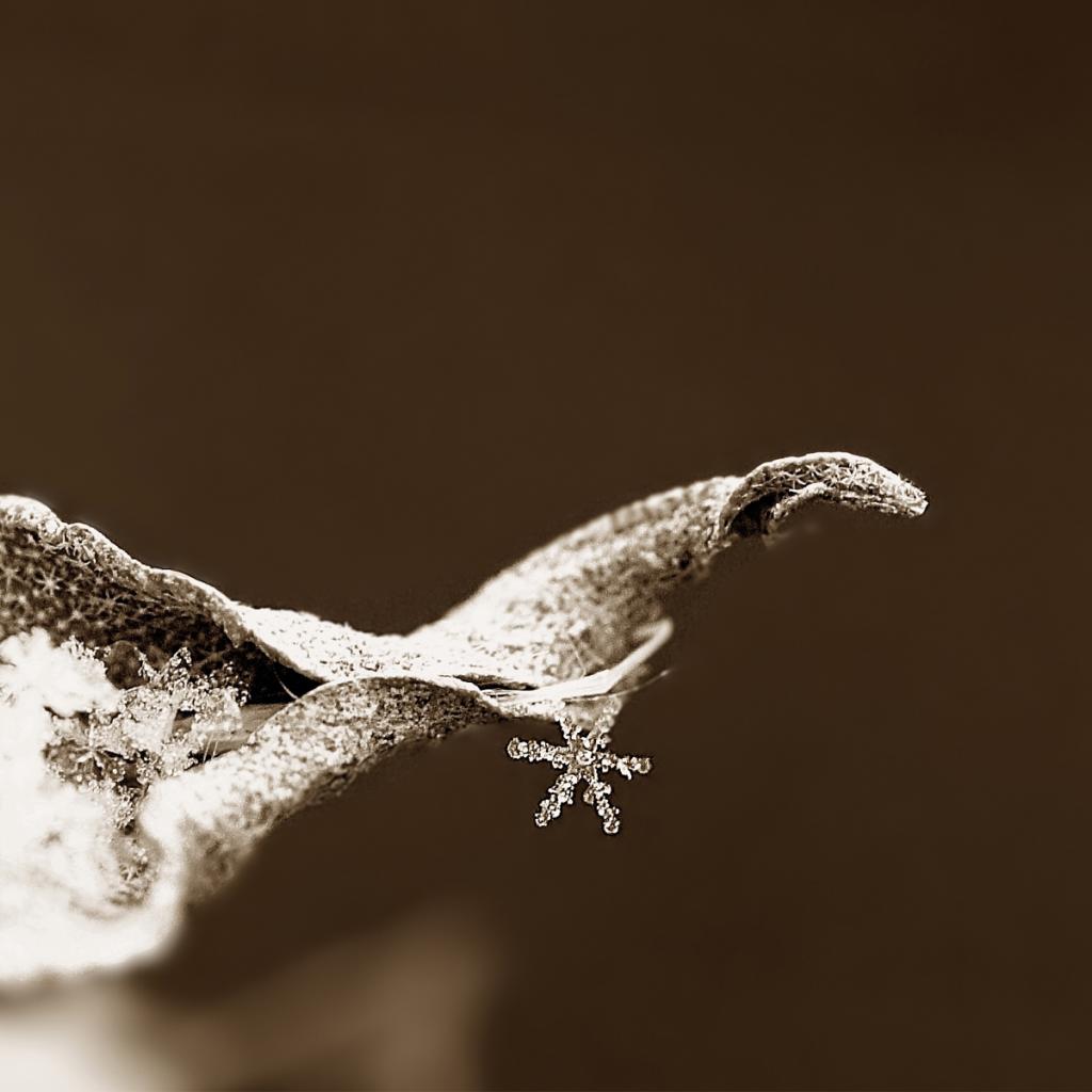 Wallpaper Snowflake on a dry leaf
