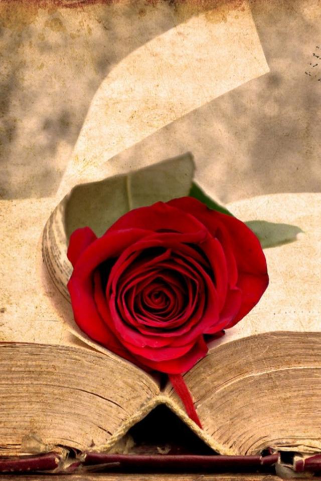 Wallpaper Red rose on book pages