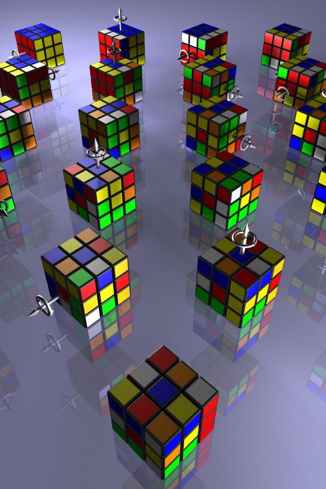 Wallpaper The wreckage of the Rubik`s Cube are among leaves