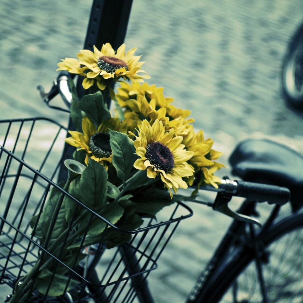 Wallpaper Sunflowers in bicycle basket