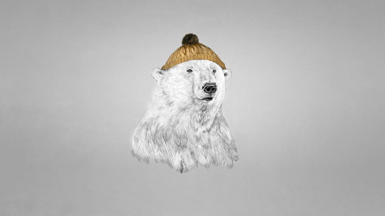 Wallpaper Polar bear in a cap