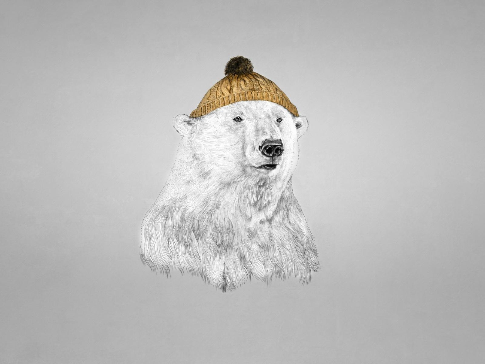 Wallpaper Polar bear in a cap