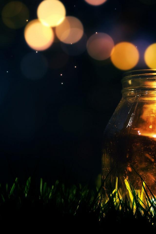 Wallpaper Glass jar on the grass at night