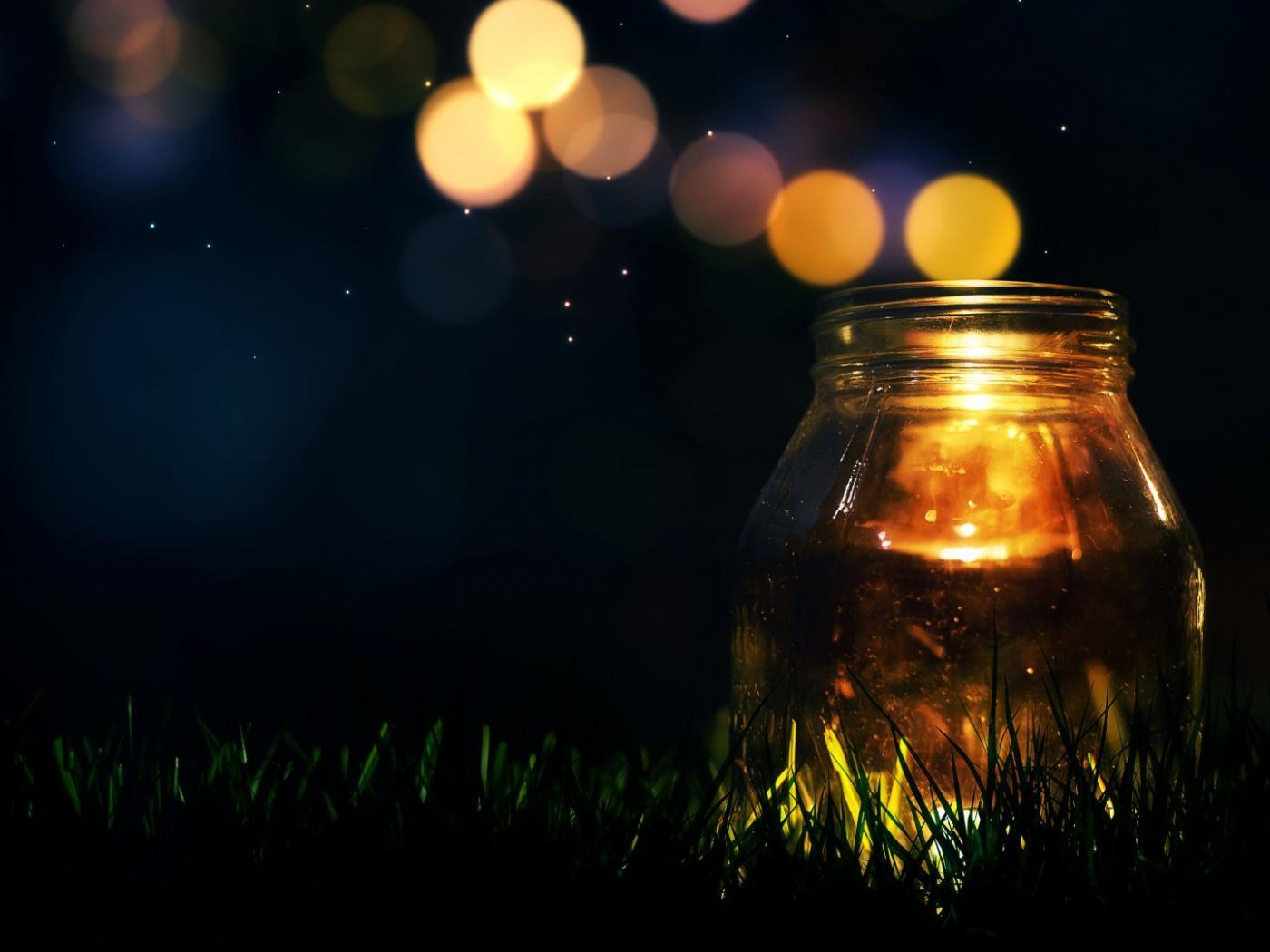 Wallpaper Glass jar on the grass at night