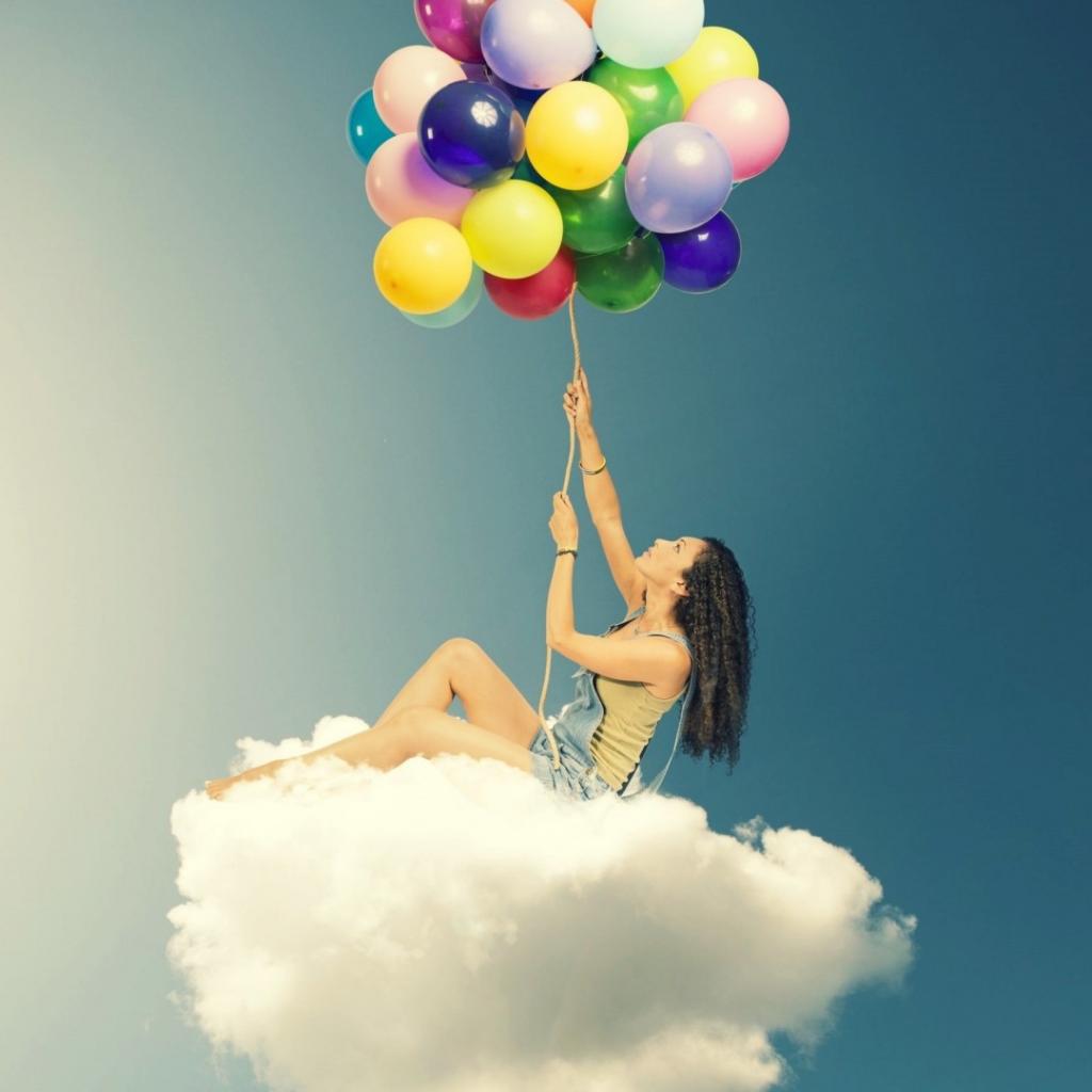 Wallpaper Girl with balloons on the cloud