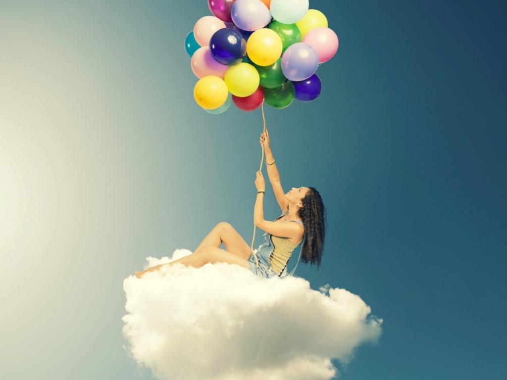 Wallpaper Girl with balloons on the cloud
