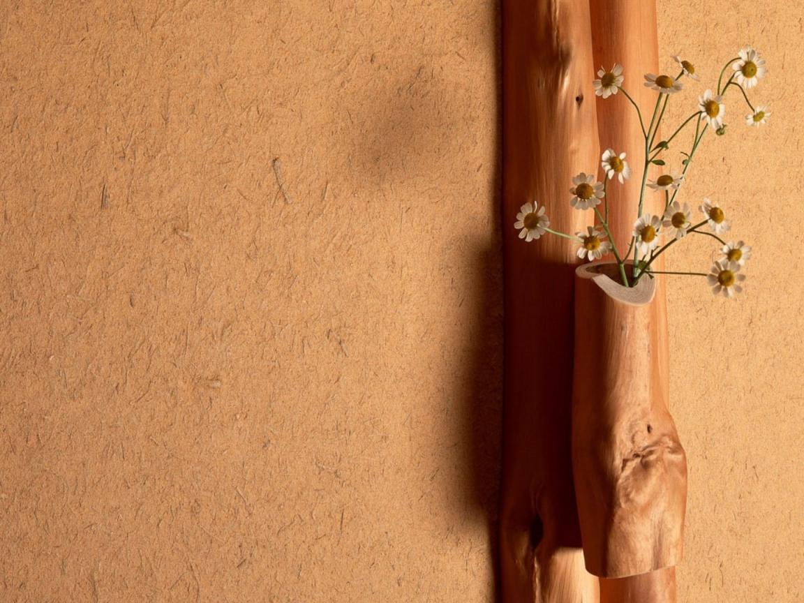 Wallpaper Daisies in wooden vase