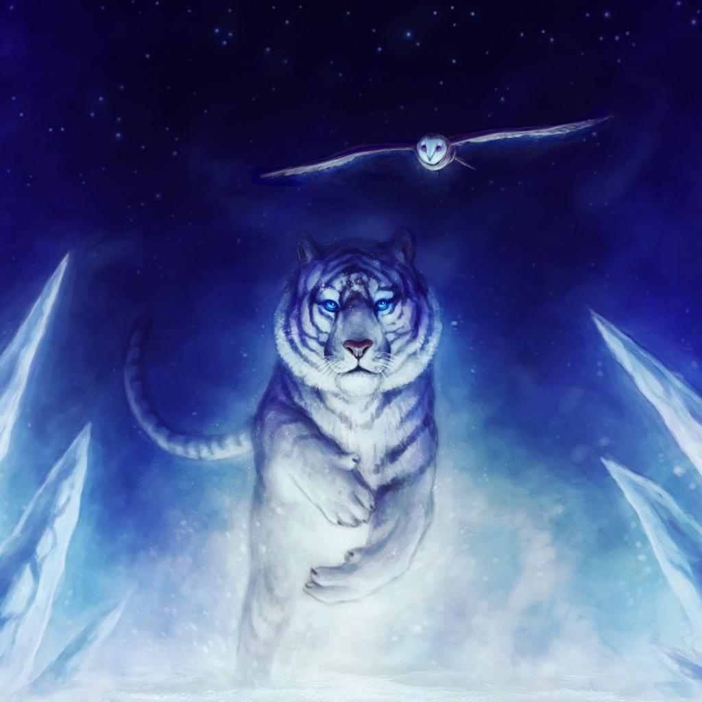 Wallpaper White tiger owl art