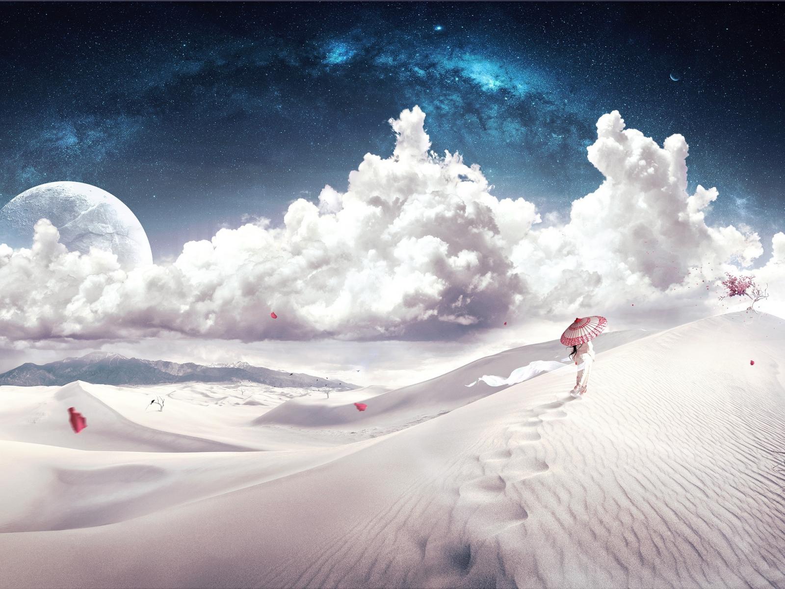 Wallpaper Man flies on umbrella