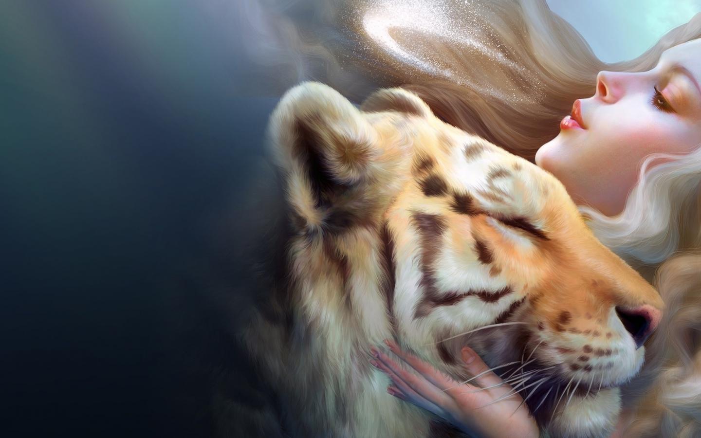 Wallpaper Tiger girl