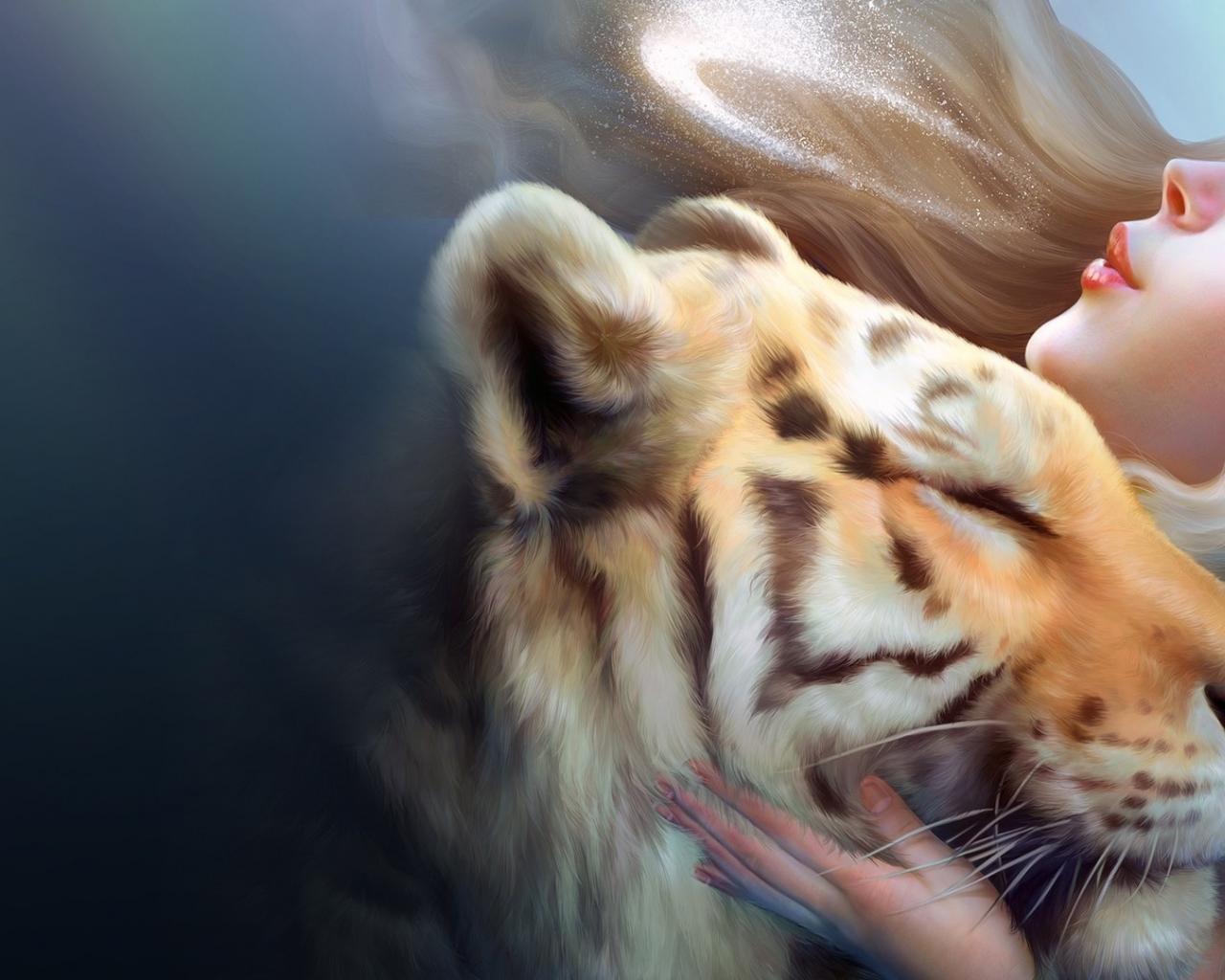 Wallpaper Tiger girl