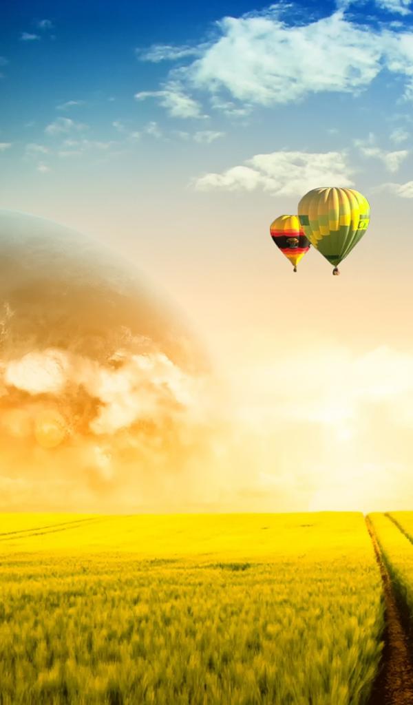Wallpaper Cumulus clouds over the countryside in the mountains