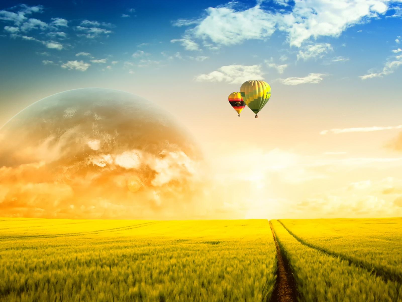 Wallpaper Cumulus clouds over the countryside in the mountains