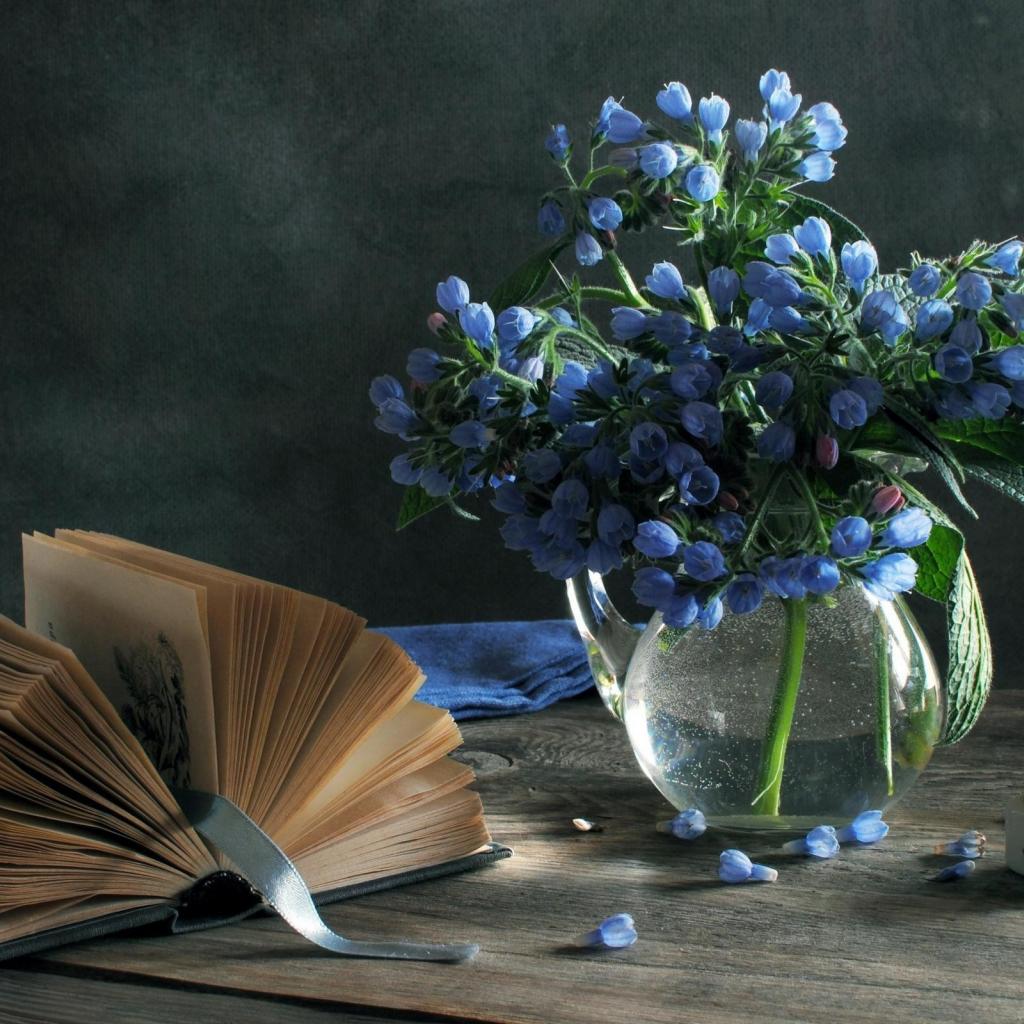 Wallpaper Blue flowers and a book