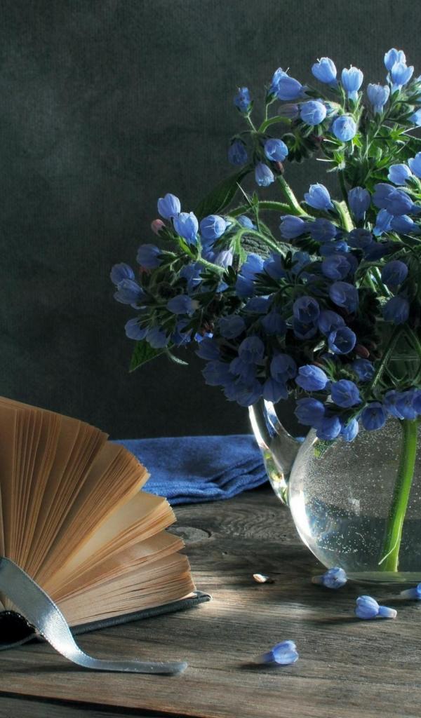 Wallpaper Blue flowers and a book