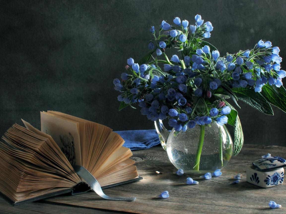 Wallpaper Blue flowers and a book