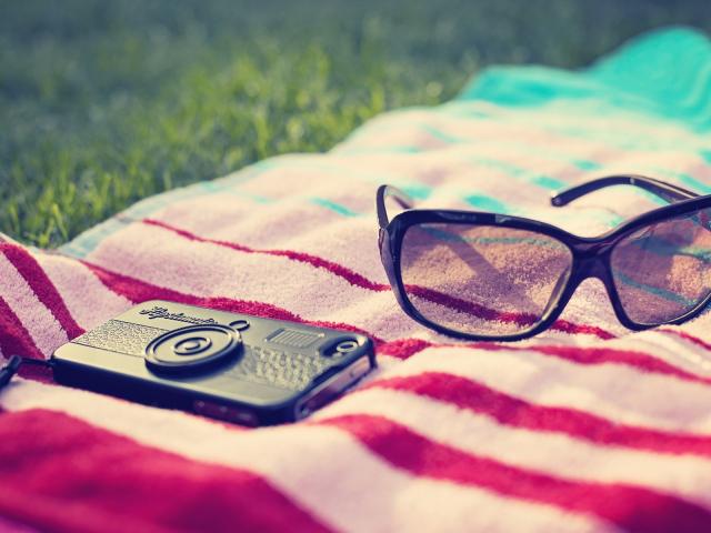 Wallpaper Glasses, Green grass, phone, blanket
