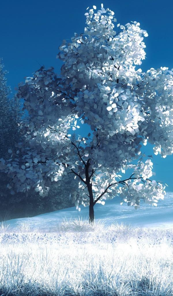 Wallpaper Snow, Trees, Bench, style
