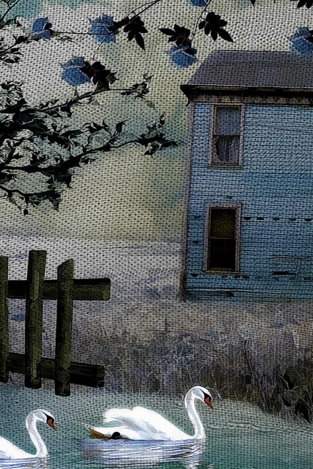 Wallpaper Trees, House, White swans, Swan