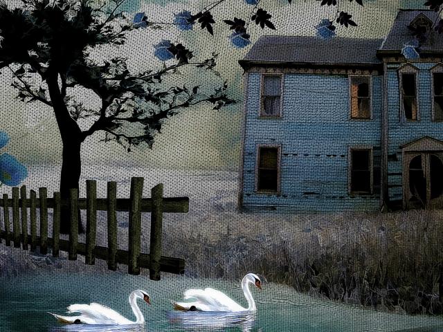 Wallpaper Trees, House, White swans, Swan
