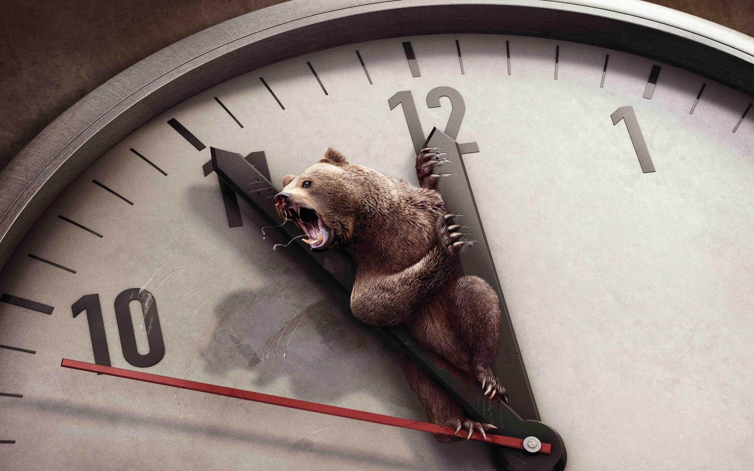 Wallpaper Bear and clock