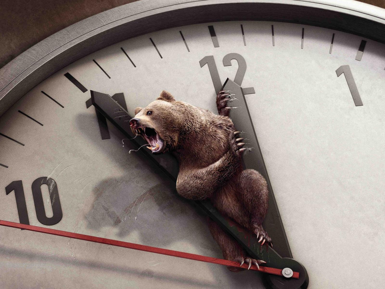 Wallpaper Bear and clock