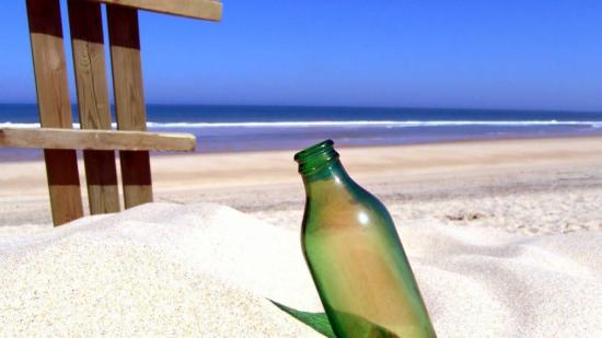 Wallpaper The bottle on the sand