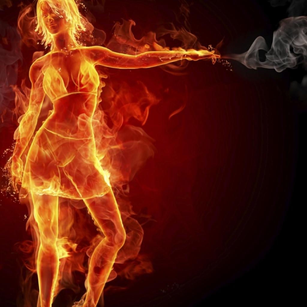 Wallpaper Girl in black dress playing with fire