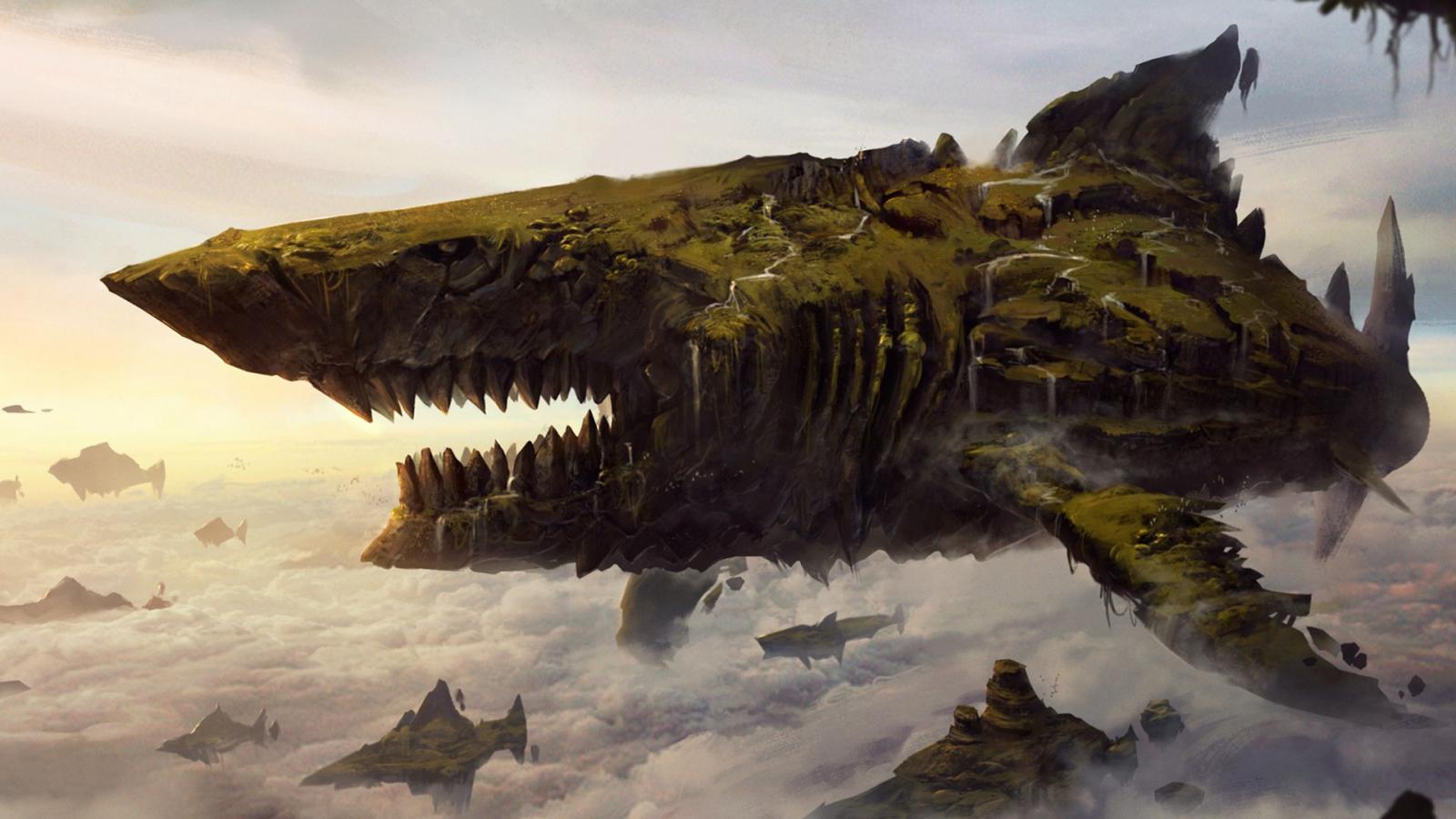 Wallpaper A flock of flying shark