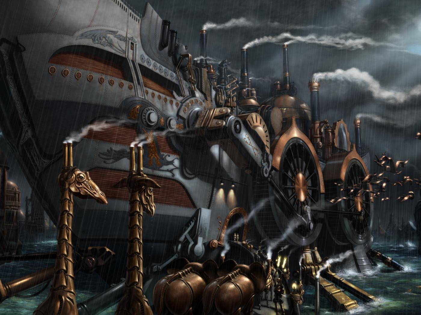 Wallpaper Land ship steampunk