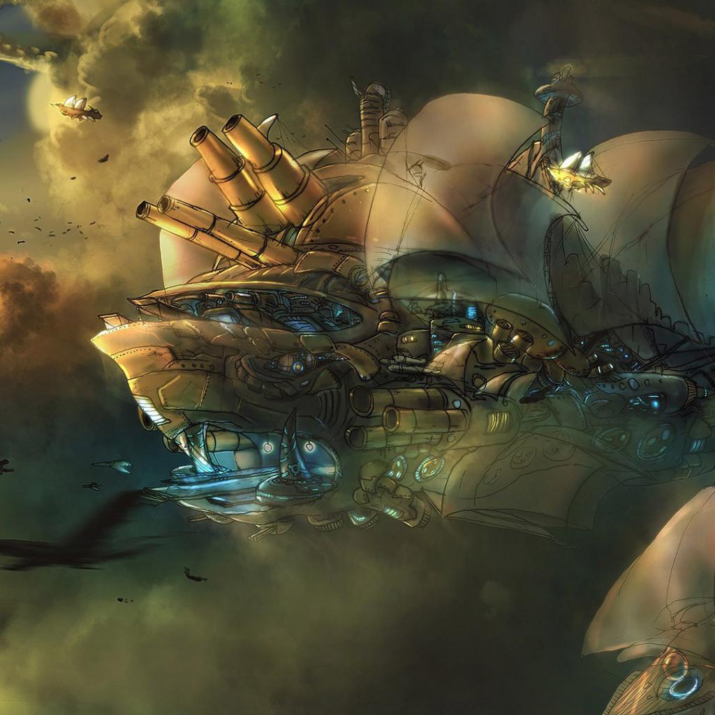 Wallpaper Flying steampunk battleship