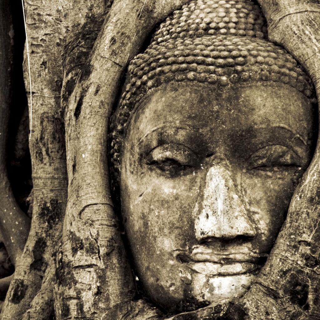 Wallpaper Face of Buddha in tree