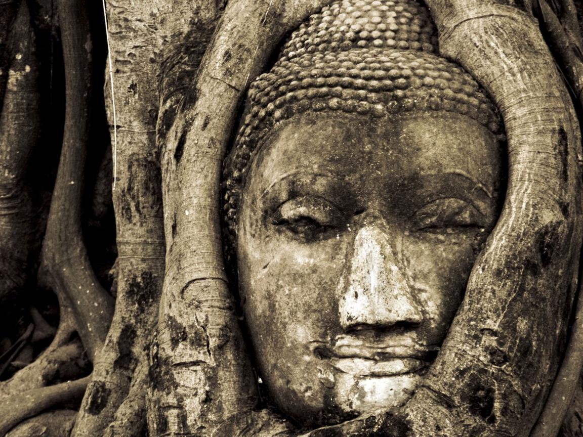 Wallpaper Face of Buddha in tree