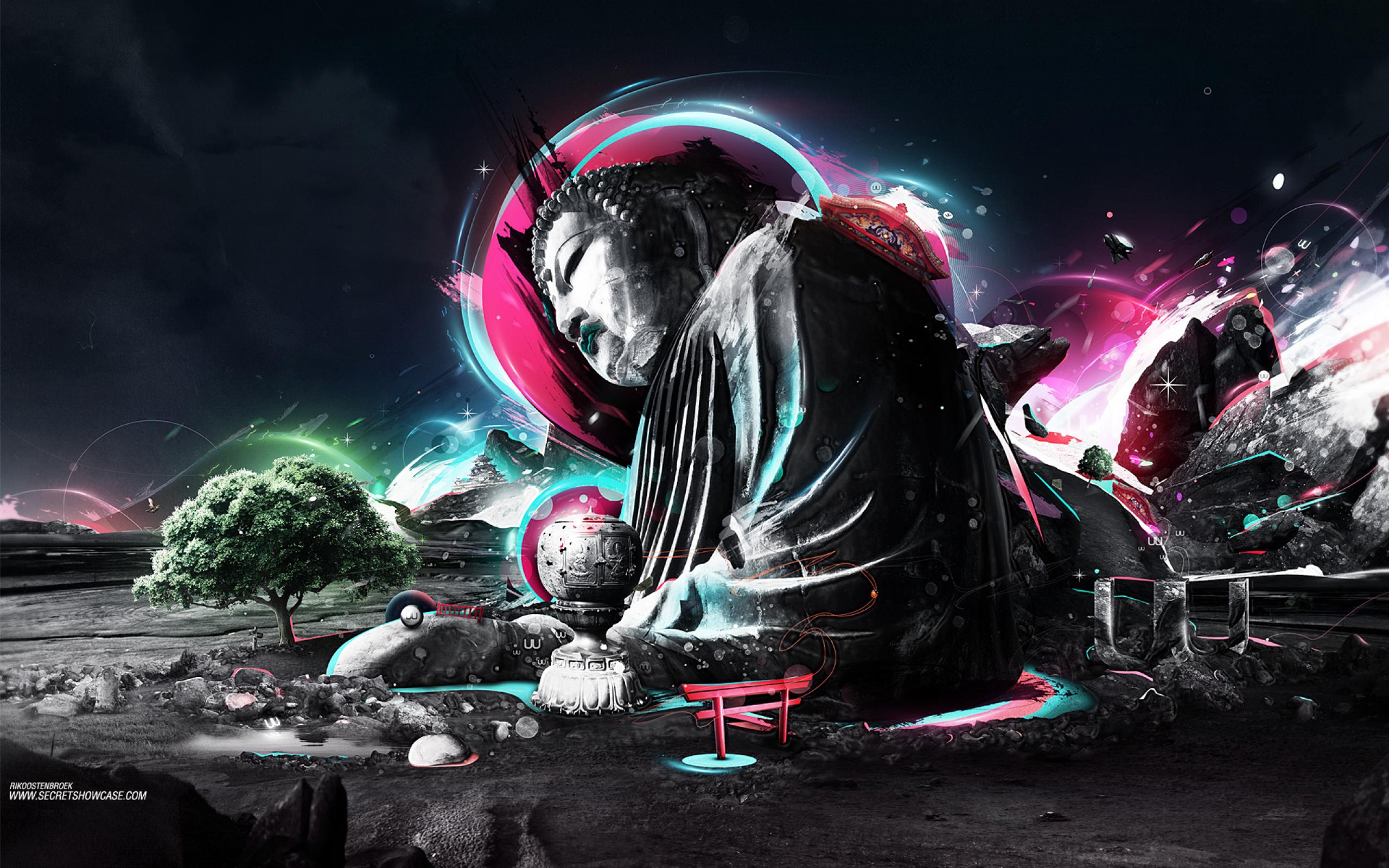 Wallpaper Buddha on a background of the cosmos