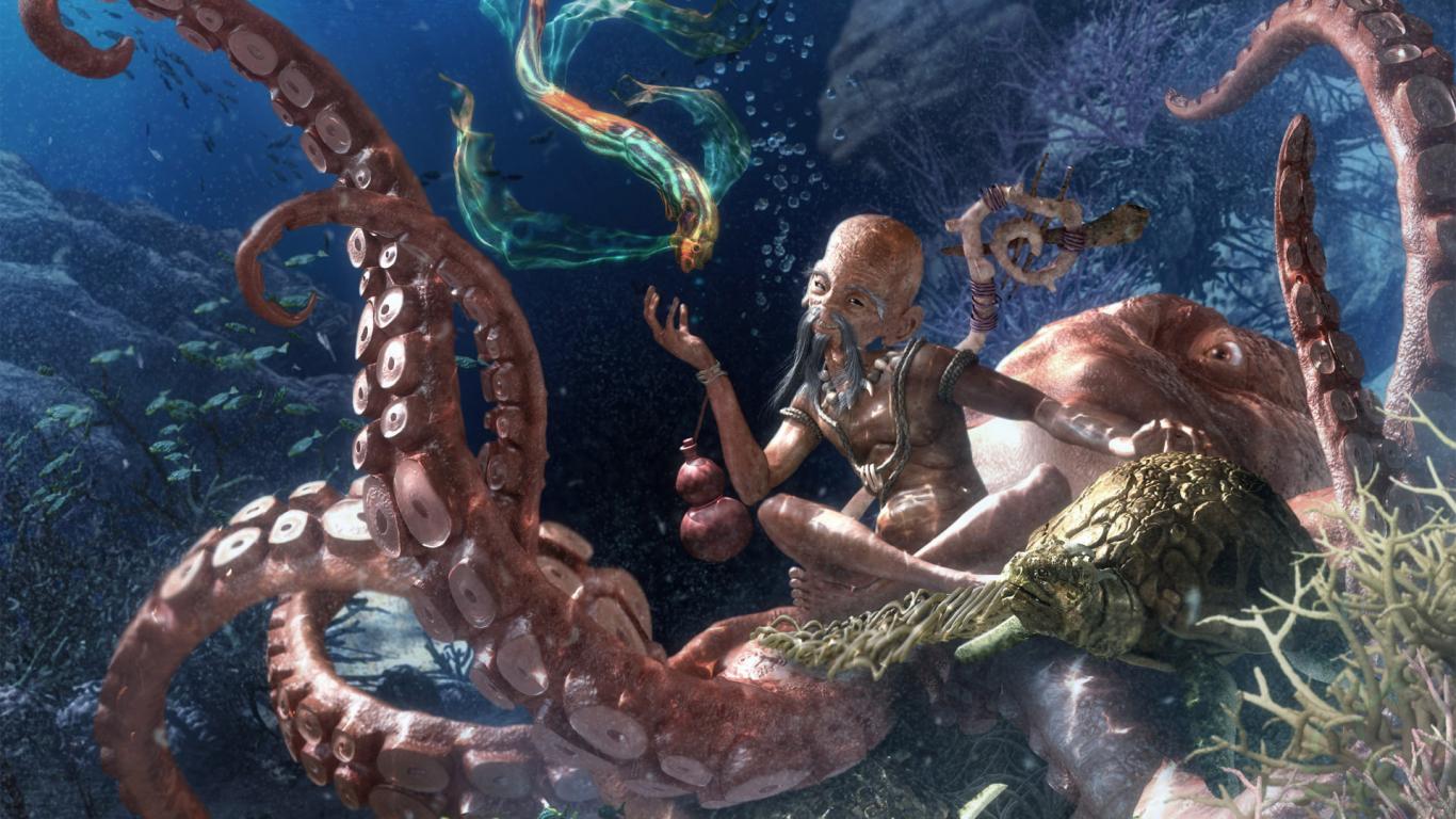 Wallpaper Marine Buddha on octopus