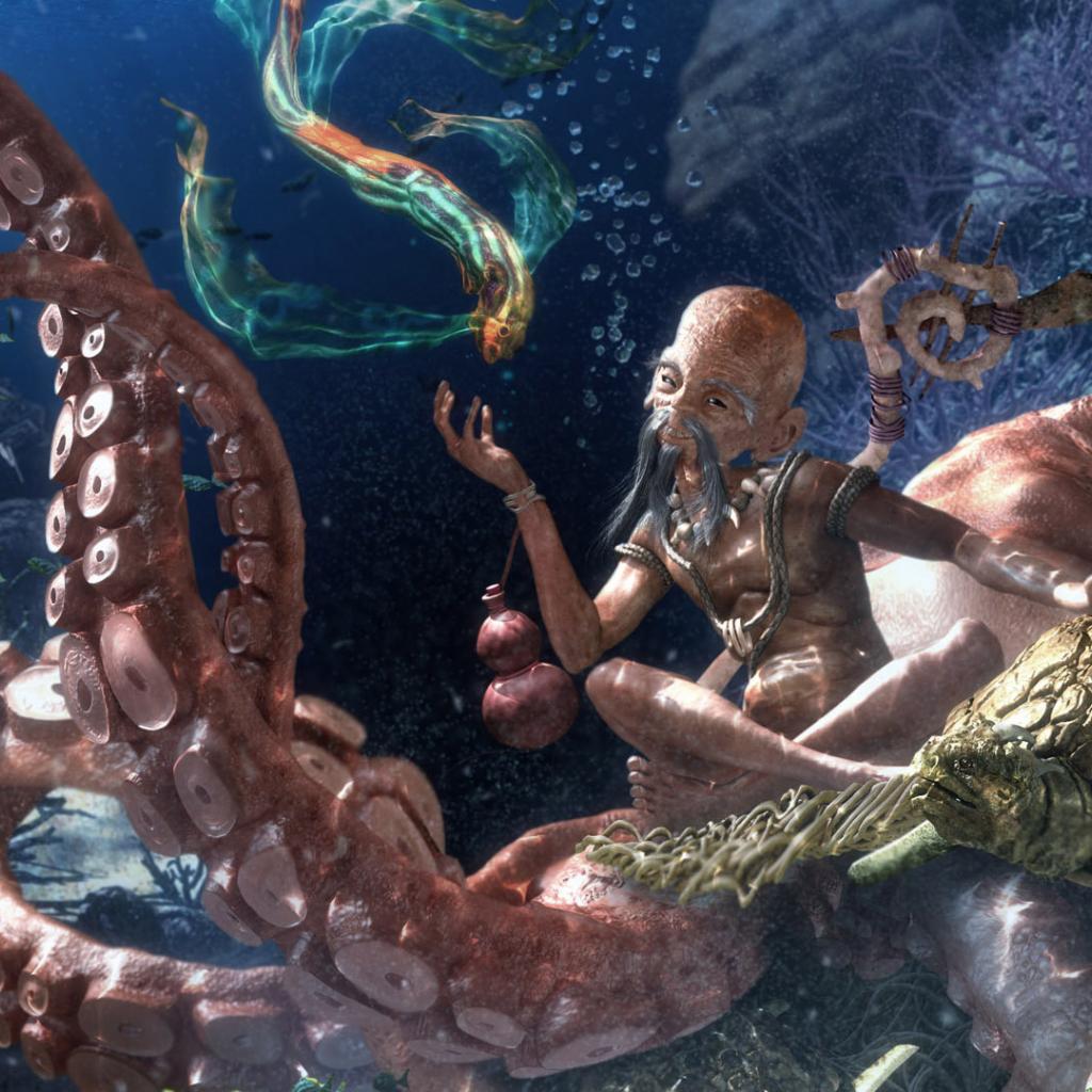 Wallpaper Marine Buddha on octopus