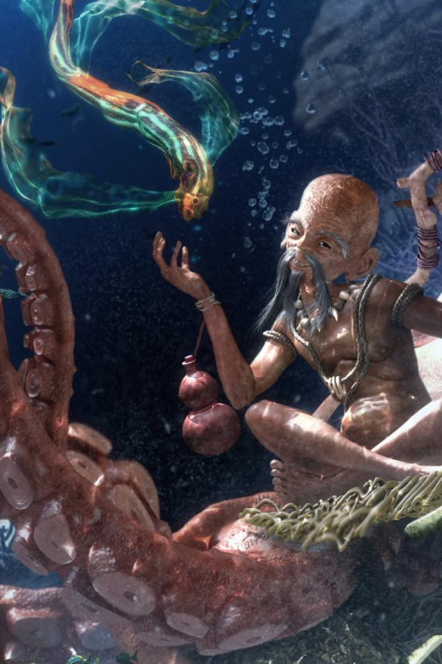 Wallpaper Marine Buddha on octopus