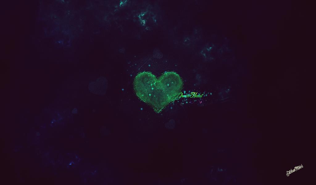 Wallpaper Green heart on a black background