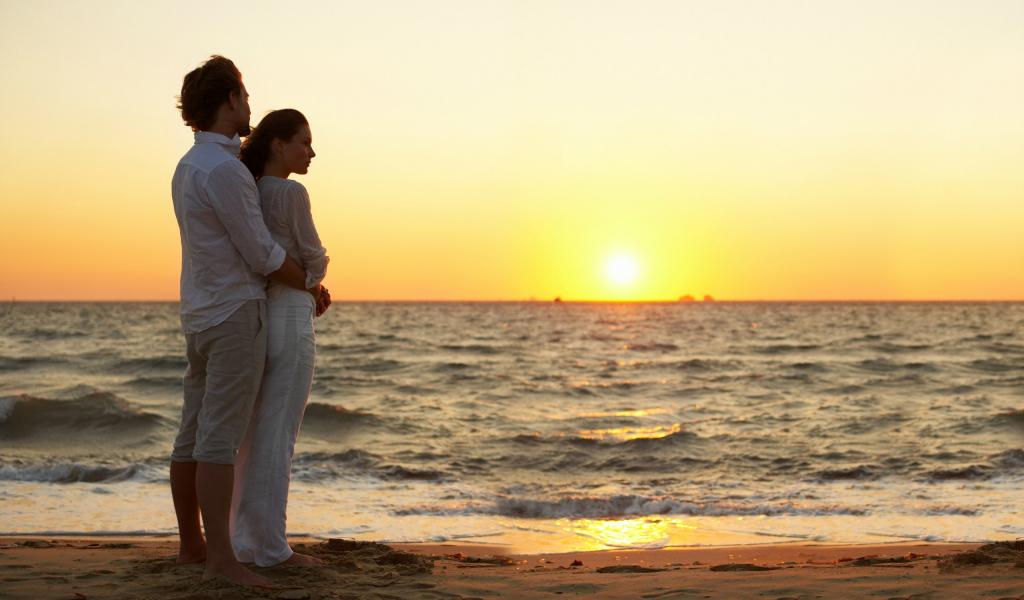 Wallpaper Lovers in the sunset by the sea