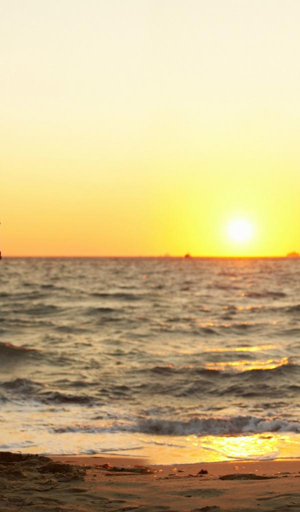 Wallpaper Lovers in the sunset by the sea