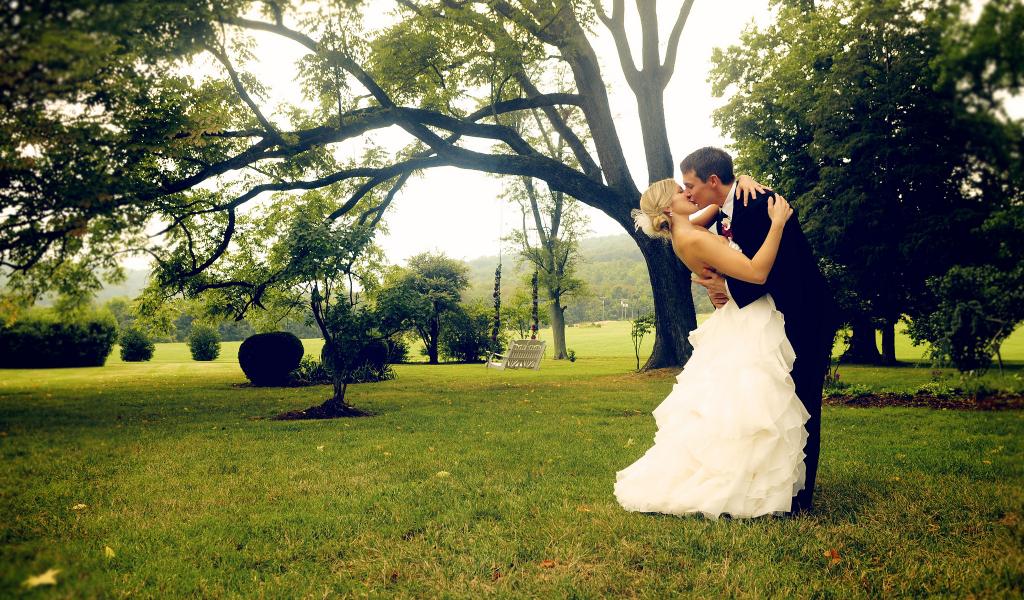 Wallpaper Lovers kiss in the park
