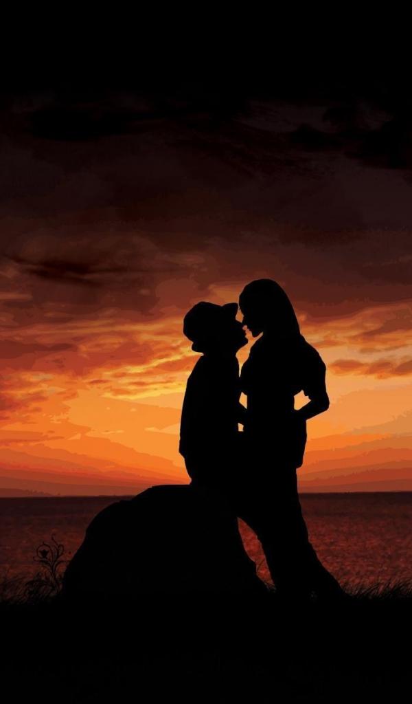 Wallpaper Lovers in the sunset by the sea