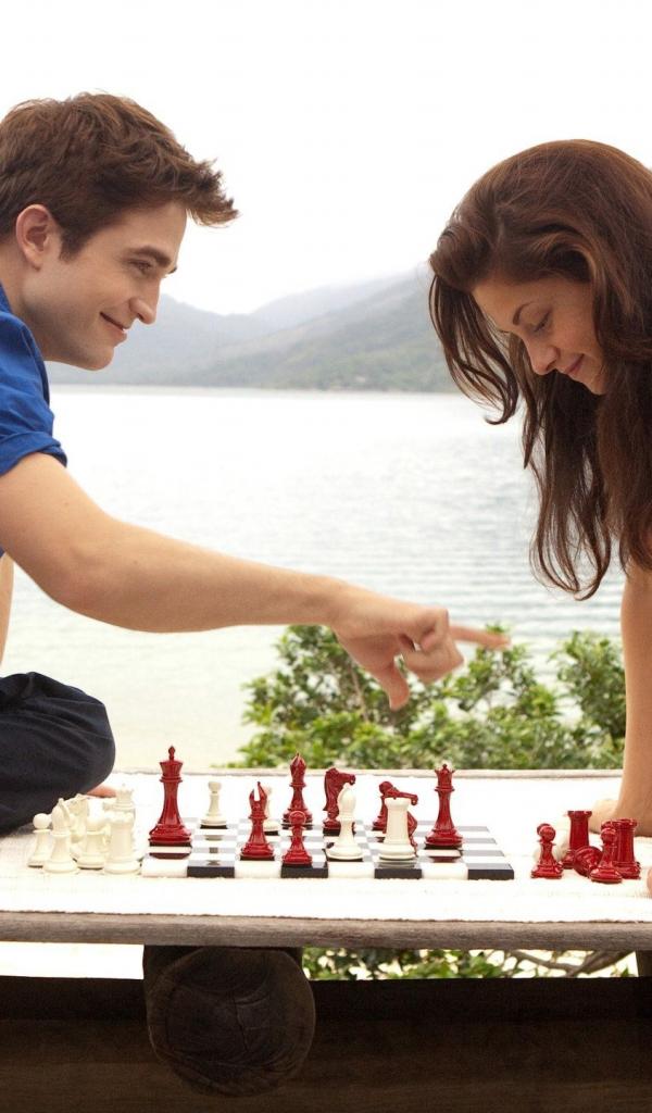 Wallpaper Cute pair plays chess