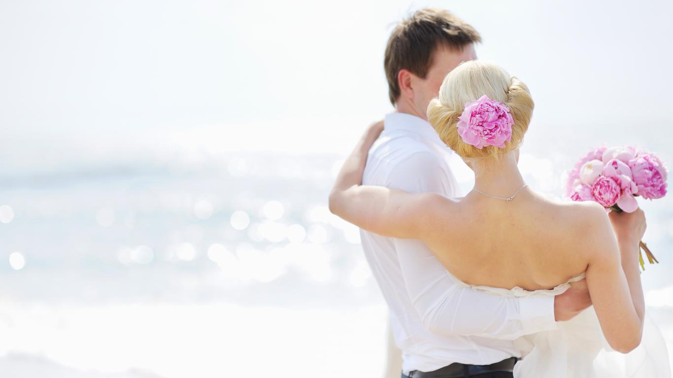Wallpaper Cute couple, Girl in love, marriage, bouquet, Bride