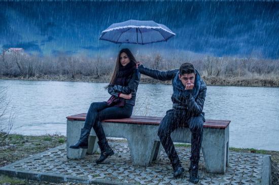 Wallpaper The guy holding an umbrella over the girl in the rain