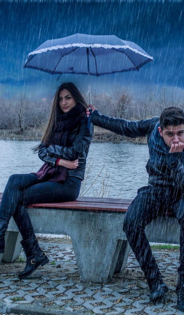 Wallpaper The guy holding an umbrella over the girl in the rain
