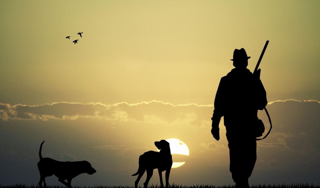 » Wallpaper Hunter with dogs in the sun