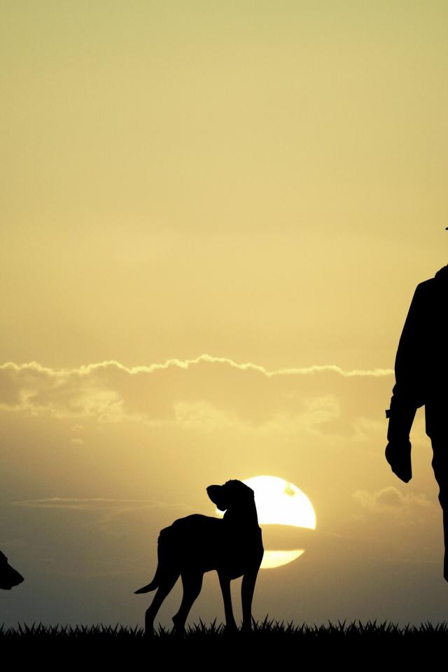 » Wallpaper Hunter with dogs in the sun
