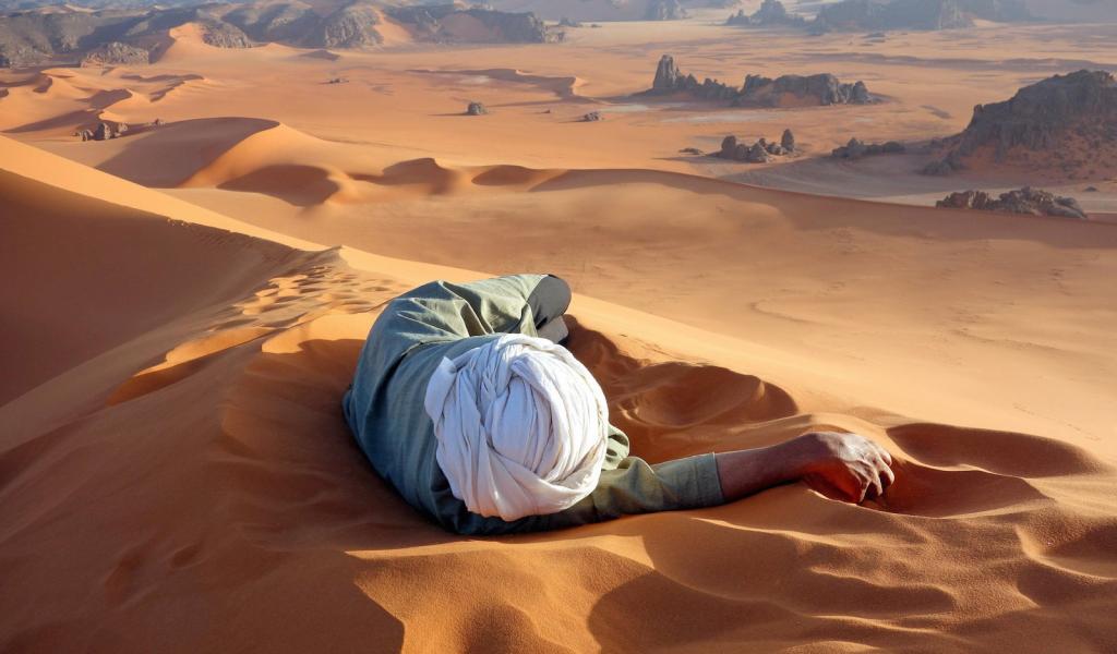 Wallpaper Man lying on the sand in the desert
