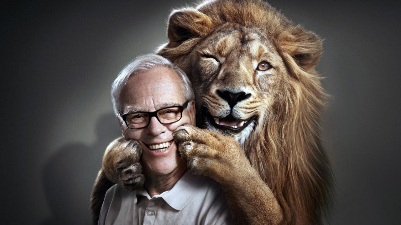 Wallpaper Lion hugs trainer